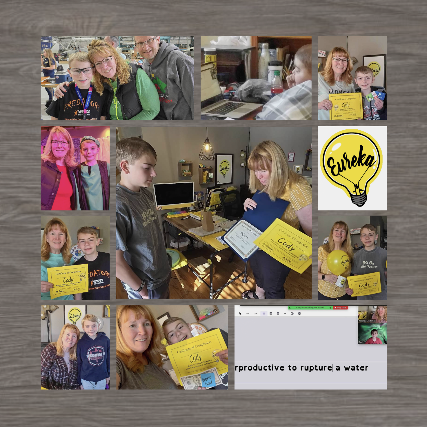 Cody was my first Eureka student beginning Fall 2018. We figured it out together just before an unexpected health diagnosis came for Cody, which required many medical treatments including chemotherapy and 2 bone marrow transplants. We were zooming in 2019, which meant he could continue progressing forward, at a pace that worked for his health/energy levels.