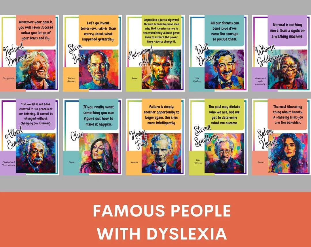Getting to work with dyslexics IS inspiring. The way they think is something I can not fully relate to being “neuro-typical”. Sharing tools with them to help them make sense of the english language, well that’s my jam. Sharing with them the dyslexic greats is so incredibly fun, they have HOPE that they, too, can be (and are!) great thinkers that can become amazing adults. Below is just a few. On my resources page, https://www.eurekatutoringllc.com/resources you can find a few books I typically gift my students at Christmas that inspire further. These books contain famous dyslexics in history and present day they can learn about by people who read these to them. Watching their faces light up at the revelation that it’s highly likely Albert Einstein himself, considered to be THE most brilliant mind in all of mankind, strugged with reading and spelling (aka dyslexia) as they themselves do, well, it’s a priceless moment.