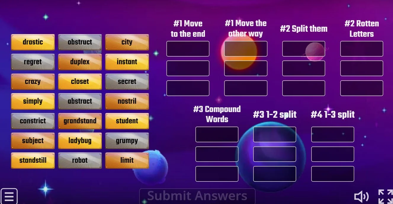 This site offers donation based games specific to the Book and Lesson we are working on. Great fun graphics, themes, and sound effects.